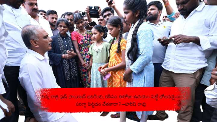 నిన్న రాత్రి ఫుడ్ పాయిజన్ జరిగింది, కనీసం ఈరోజు ఉదయం పెట్టే భోజనమైనా సరిగ్గా పెట్టడం చేతకాదా? –హరీష్ రావు